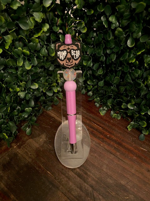 A Mama Bear bead with a multi-colored confetti bead on a glittery lavender pen! Will ship with one ink refill.