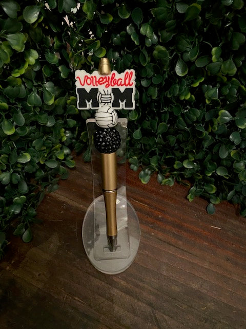 A great pen for any volleyball Mom! A volleyball bead with a black rhinestone bead on a gold pen. Will ship with one ink refill.